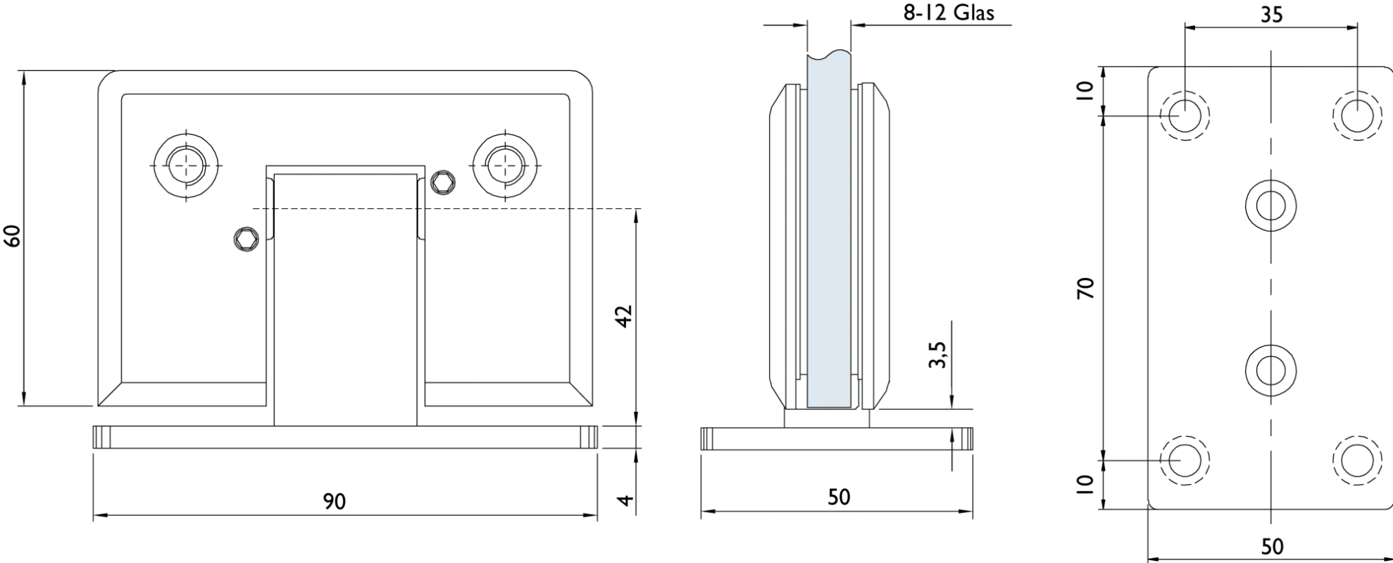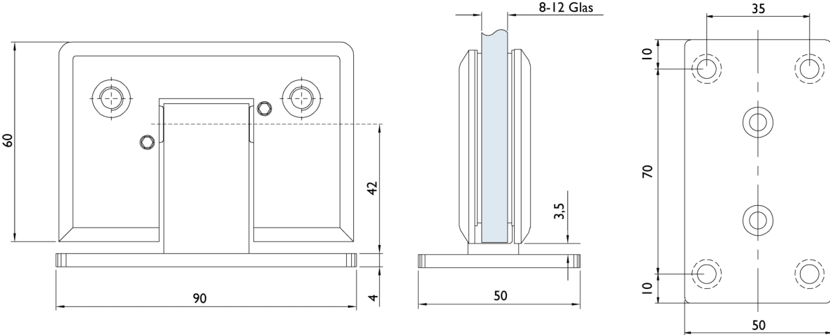 Pendeltürband für Glastüren 6856 G-W, zur Bef. Glas/Wand - Tragkraft 30 kg p. St., justierbarer Endanschlag +/- 15°/ 8-12 mm Glas, pneumatische Schließfunkt. ab 70°/Tür max. 915 mm, Oberfl. 20 (Mattni
