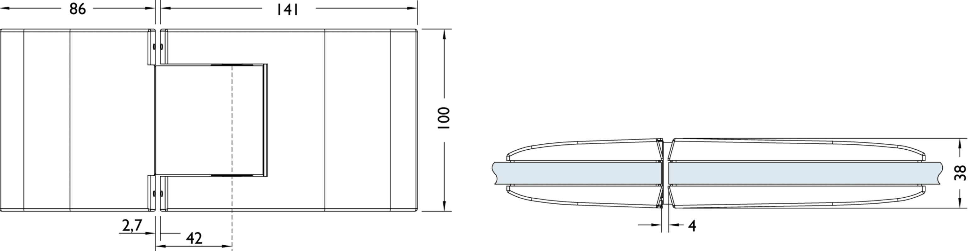 Pendeltürband für Glastüren 6857 G-G, zur Bef. Glas/Glas - Tragkraft 100 kg p. Paar, 8 - 12 mm Glas / max Türbreite 1200 mm, mit 90° Feststellung, Oberfl. 60 (Edelstahl matt)