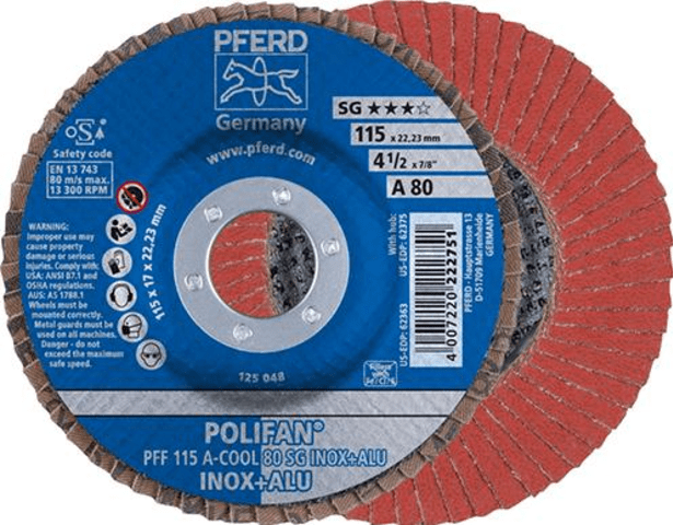 PFERD FÄCHERSCHLEIFSCHEIBE PFF 115 A- COOL 80 SG INOX+ALU 115MM K80 67658115