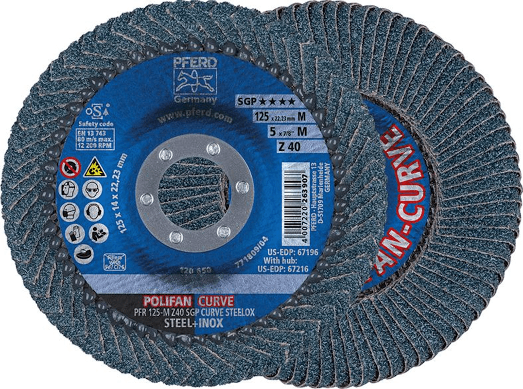 Fächerscheibe POLIFAN Z SGP CURVE STEELOX• Zirkonkorund • Glasgewebeteller • Maximaler Materialabtrag und herausragende Standzeit • Ohne die Zugabe von eisen-, schwefel- und chlorhaltigen Füllstoff