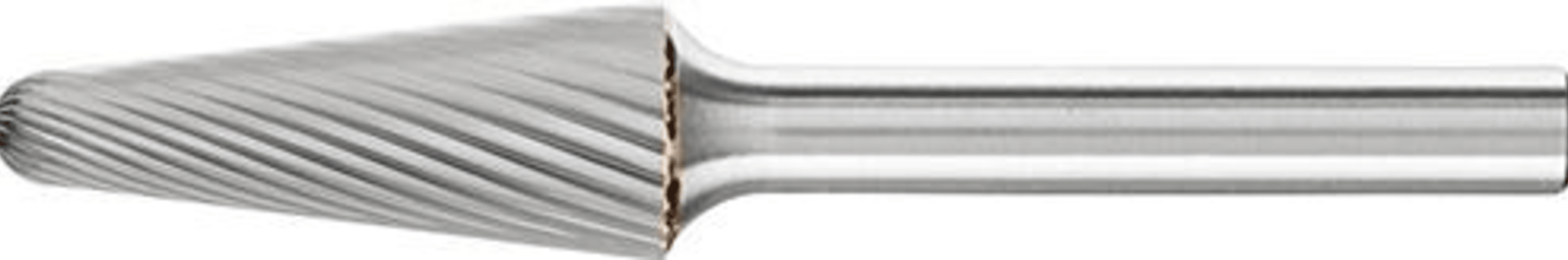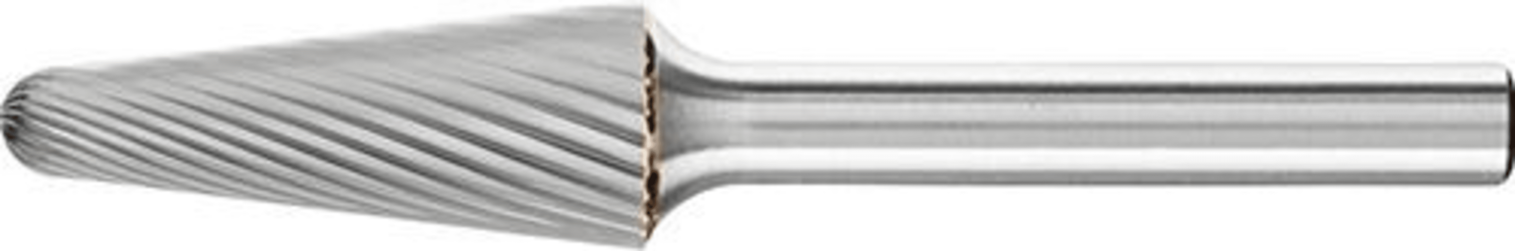 HM-Frässtift KEL, Rundkegelform, Zahnung 3• Hoher Materialabtrag • Gute Oberfläche • Für die Bearbeitung von Stahl, Guss, Leicht- und NE-Metallen