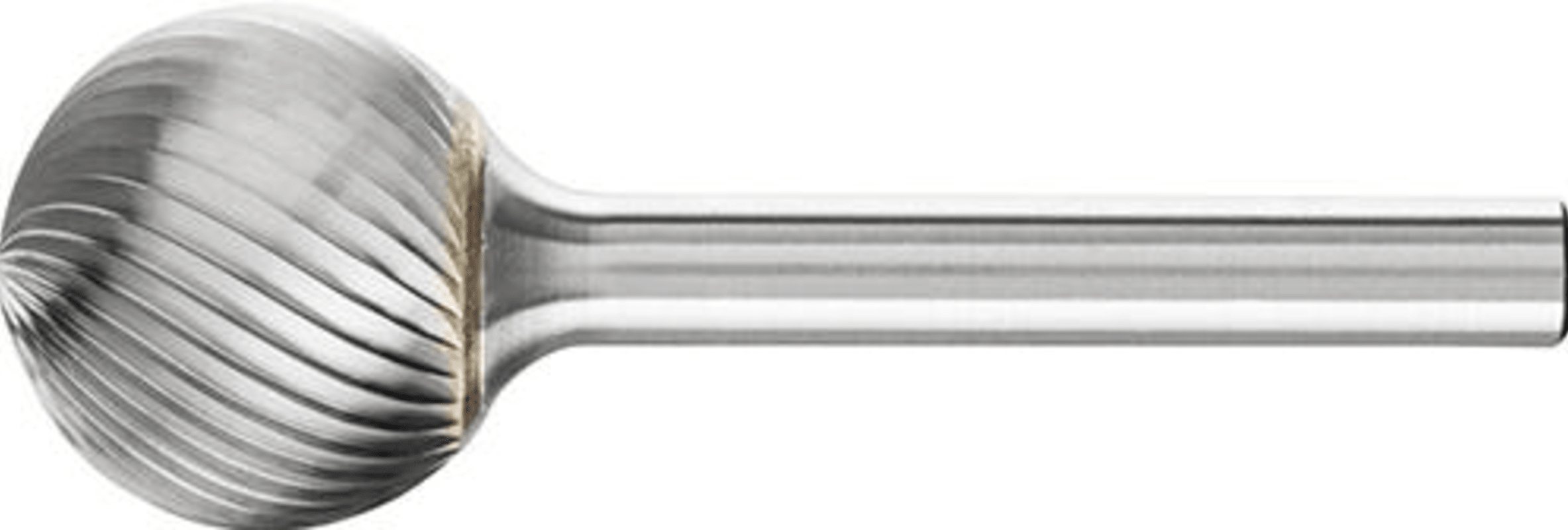 Hartmetall-Frässtift mit 6 mm Schaft, Kugelform KUD, Zahnung 3