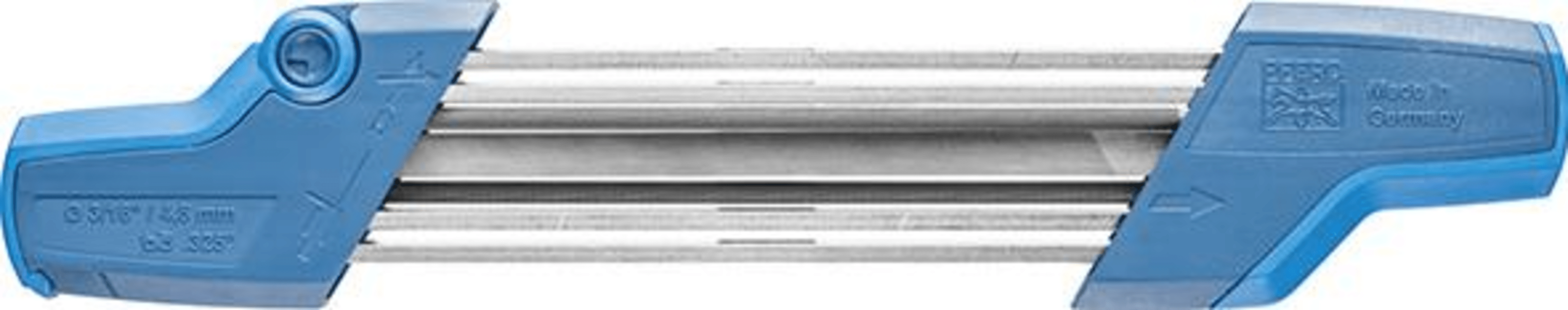 • Gleichzeitiges Schärfen der Zahnschneide und Justieren des Tiefenbegrenzers