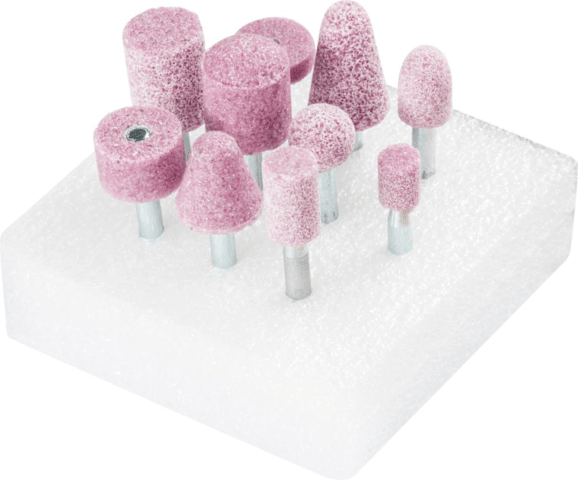 Schleifstift-Satz 2001 STEEL EDGE• Edelkorund rosa AR Härte O • Empfohlene Schnittgeschwindigkeit: 25–40 m/s • Keramische Bindung 5 V • Für den Kanteneinsatz und für Entgratarbeiten auf Stahl und S