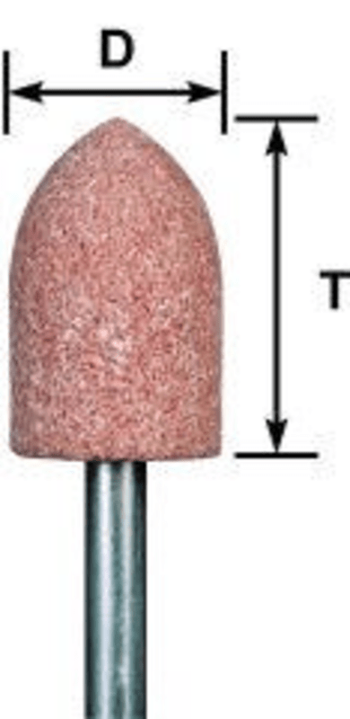 Spitzbogen-Schleifstift Typ SP (3 mm Schaft-Ø) Edelkorund rosa AR, Härte 0 (mittel), keramische Bindung 5 V, universell einsetzbar, formstabil, kantenfest. Für Stahl, Stahlguss, Schweißnähte. Empfohle