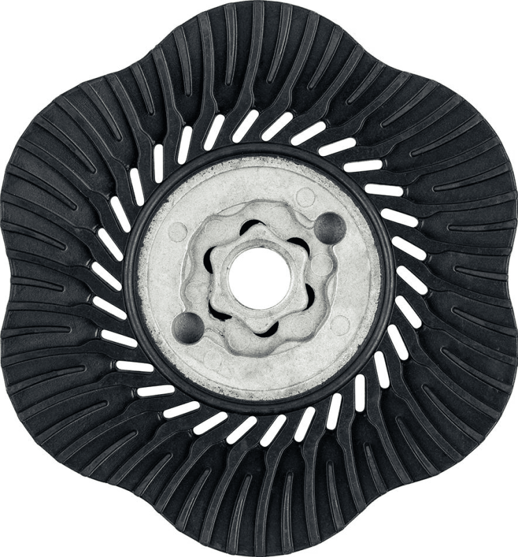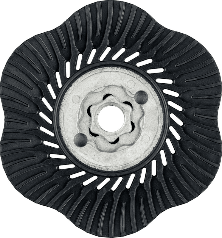 COMBICLICK-Stützteller CC-GT für Fiberscheiben• Mittelhart, für den Einsatz auf Stahl • Patentiertes Kühl- und Schnellspannsystem • Kühlschlitze im Stützteller sorgen für hohen Luftdurchsatz • Deut