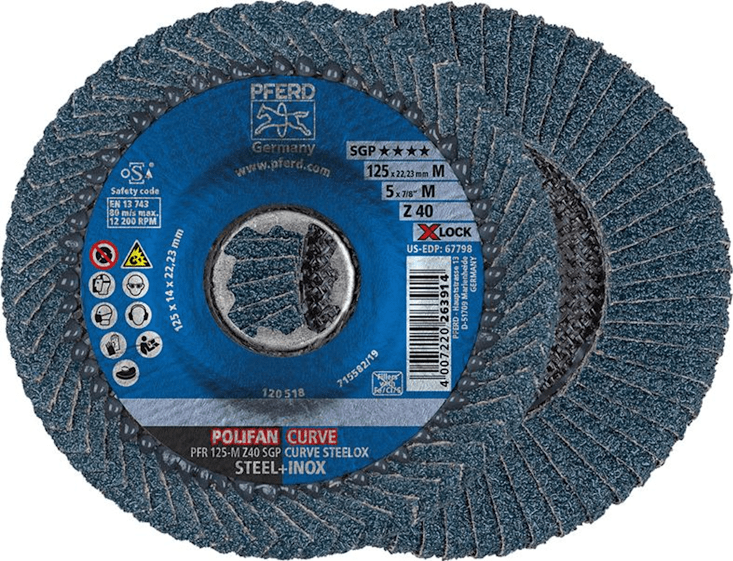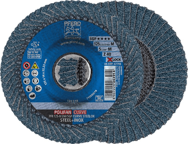 X-LOCK-Fächerscheibe POLIFAN Z SGP CURVE STEELOX• Zirkonkorund • Glasgewebeteller • Maximaler Materialabtrag und herausragende Standzeit • X-LOCK-Aufnahme für komfortable und schnelle Werkzeugwechs