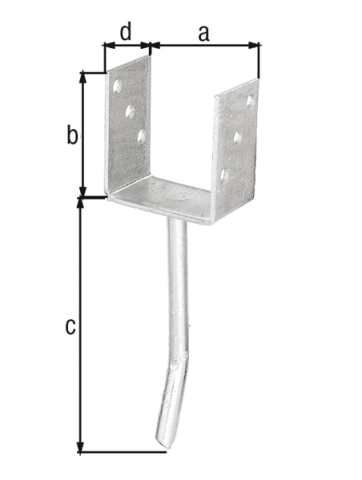 GAH Alberts Pfostenträger; Basis: Pfostenträger; Form: U-Form; Ausführung: mit Betonanker; Werkstoff: Stahl; Oberfläche: feuerverzinkt; Befestigung: zum Einbetonieren; Befestigung des Pfosten: Schraub
