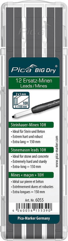 Minen-Set für Zimmermannsstift BIG Dry 10H• Minenetui mit Doppelflügel zum Öffnen für eine einfache und intuitive Handhabung • Extraharte Mine für trockenes Mauerwerk und sonstige raue Oberflächen