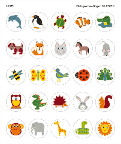 HEWI Piktobogen 25 Motive selbstkl., Serie Tiere, d:40mm