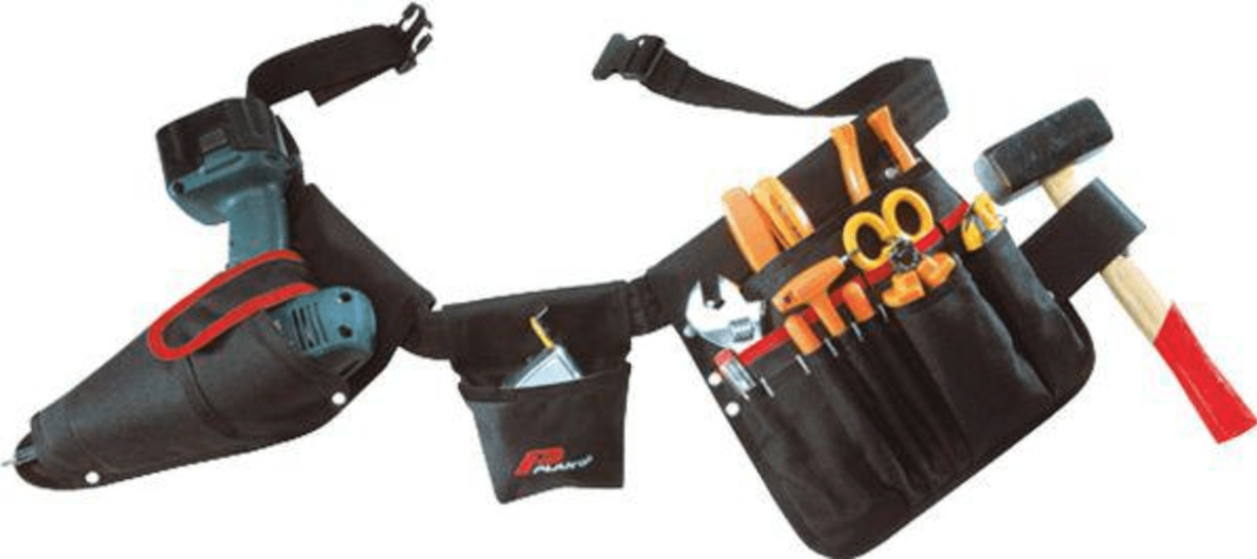 • Hammerschlaufe und geräumige Tasche für Bandmaße