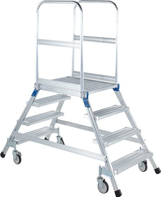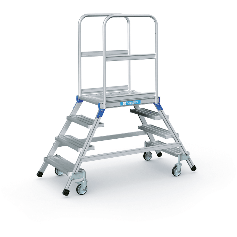 ZARGES Podesttreppe, fahrbar, beidseitig begehbar, mit Leichtmetall-Stufen und Plattform: