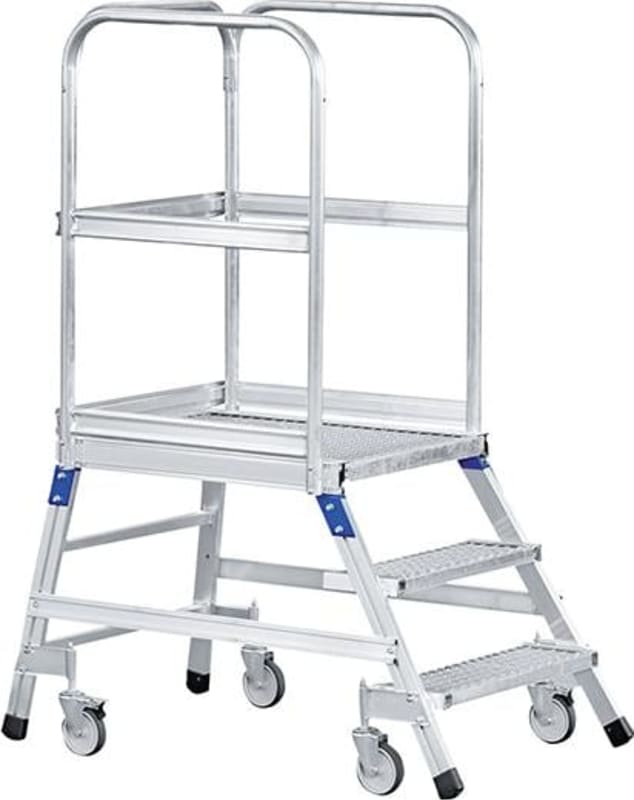 ZARGES Podesttreppe, fahrbar, einseitig begehbar, mit Stahl-Gitterrost-Stufen und Plattform:
