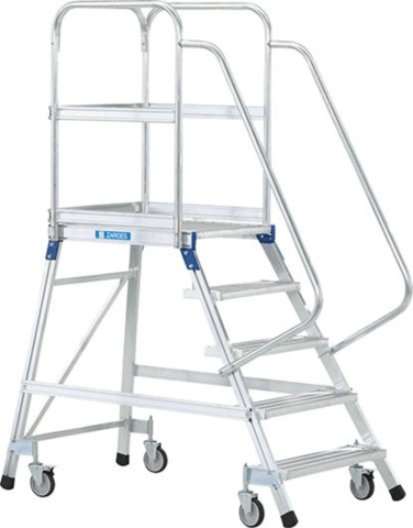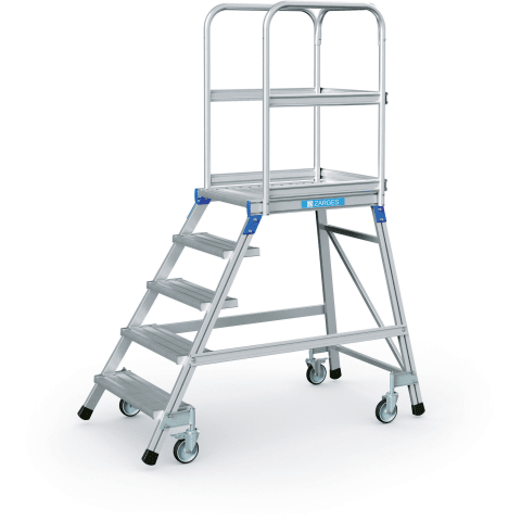 ZARGES Podesttreppe, fahrbar, einseitig begehbar, mit Leichtmetall-Stufen und Plattform:
