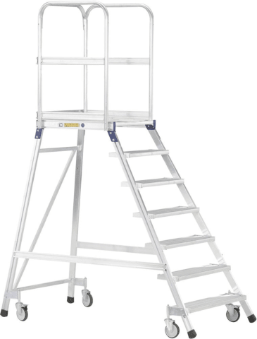 ZARGES Podesttreppe, fahrbar, einseitig begehbar, mit Leichtmetall-Stufen und Plattform: