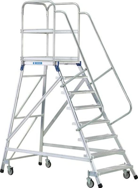 ZARGES Podesttreppe, fahrbar, einseitig begehbar, mit Leichtmetall-Stufen und Plattform: