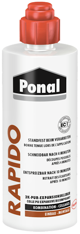 Der Ponal Rapido 2K-PUR-Expansionskleber ist die perfekte Lösung für die schnelle und sichere Montage von Türzargen, Fensterbänken und Türschwellen. Dank seiner standfesten Verarbeitung benötigt er keine Montagestreifen und bleibt präzise an Ort und Stelle. Die schnelle Aushärtung unabhängig von der Luftfeuchtigkeit ermöglicht bereits nach 4 Minuten das Schneiden und nach 10 Minuten das Entspreizen. Der treibgasfreie, alterungsbeständige und verrottungsfeste Kleber ist mit Standard-Kartuschenpistolen verarbeitbar und kann anschließend überputzt oder überstrichen werden. Mit seiner B2-Qualität nach DIN 4102 und der EMICODE EC 1 Plus-Zertifizierung erfüllt er höchste Anforderungen an emissionsarme Baustoffe. Wer einen hochwertigen 2K-Kleber für Türzargen, Fensterbänke oder Treppenstufen kaufen möchte, erhält hier ein schnellhärtendes und zuverlässiges Produkt für professionelle Anwendungen.