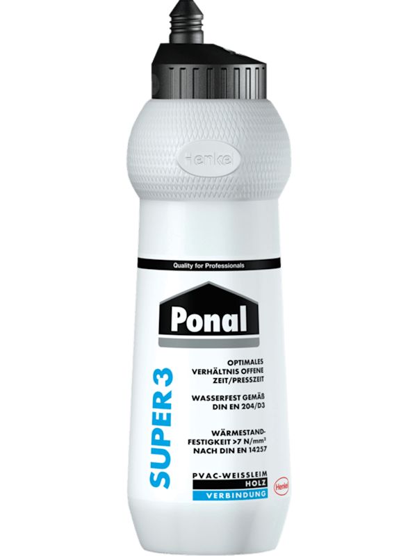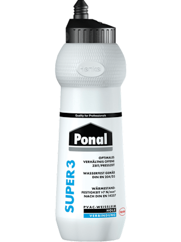Der Ponal Holzleim Wasserfest Super 3 macht bedingt wasserfeste Verleimungen einfach möglich. Dabei ist der Holzleim wasserfest nach DIN EN 204/D3 (mit Härter DIN/EN D4) und für Montage-, Fugen- und F