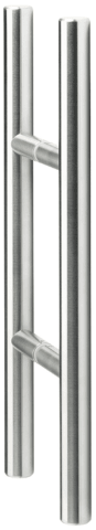Premium Stoßgriffpaar Serie "MILANO" 8500 Ø 20 mm, Länge 400 mm, Achsmaß 200 mm, 2 gerade Stützen 18 Ø mit transp. U-Scheibe, inkl. paarw. Befestigung für Tst. 8 - 55 mm, Oberfl. 60 (Edelstahl matt)