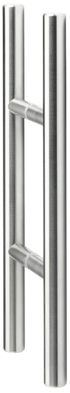 Premium Stoßgriffpaar Serie "MILANO" 8500 Ø 20 mm, Länge 600 mm, Achsmaß 400 mm, 2 gerade Stützen 18 Ø mit transp. U-Scheibe, inkl. paarw. Befestigung für Tst. 8 - 55 mm, Oberfl. 60 (Edelstahl matt)
