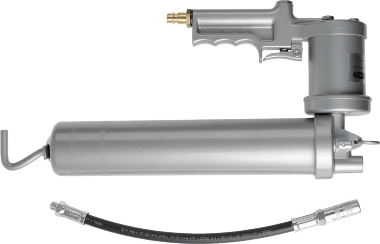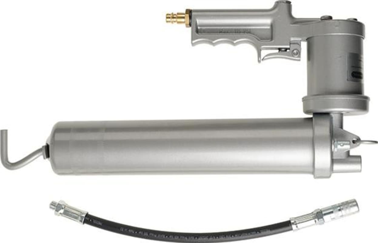 Druckluft-Fettpressen-Satz Nr. 18 072• Stahlrohr-Pressenkörper • Druckübertragung 50:1 • Versorgungsdruck 2 - 8 bar • Anschlussgewinde M10 x 1 • Passende Fettkartusche 400 g • Schubstangenbetäti