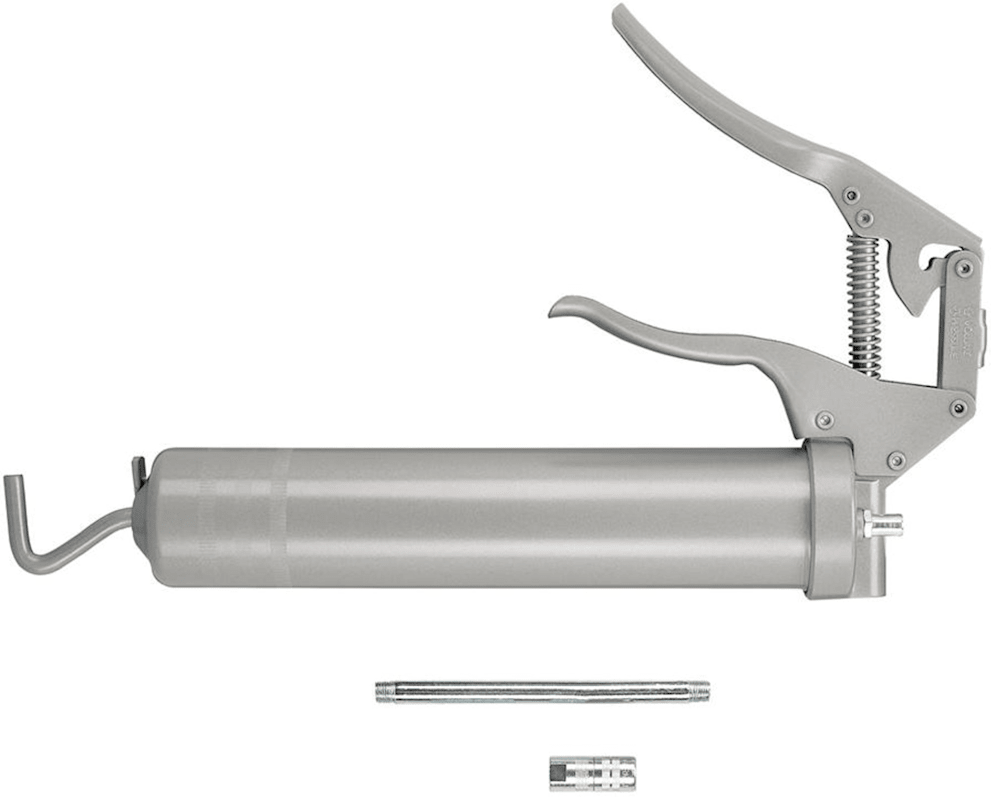Einhand-Fettpresse Nr. 12 250• Stahlrohr-Pressenkörper • Doppeldichtsystem verhindert Scheinschmierung • Umstellung am Kopf von Druck auf Volumen • Anschlussgewinde M10 x 1 • Passende Fettkartusch