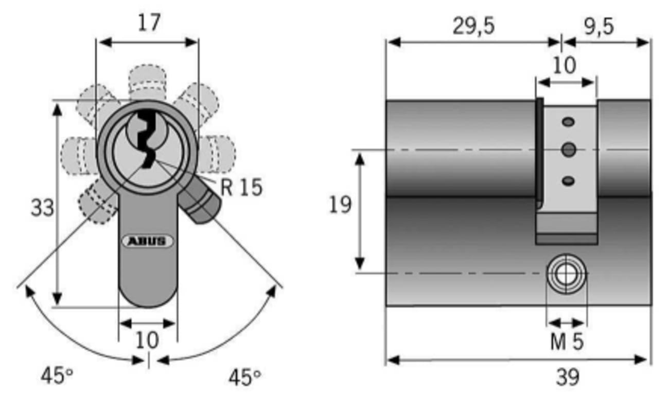 ABUS Profil-Halbzylinder Messing vernickelt, 5 Zuhaltungsstifte, 8-fach verstellbare Schließnase, nach DIN EN 1303 und DIN 18252. Verlängerungen in 5 mm Schritten. Hinweis: Auch in gleichschließend,