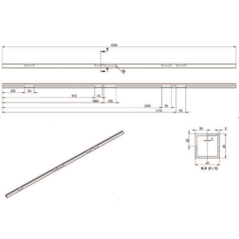 PROFILSTAHLR. 40403 LT. ZEICHNUNG 01490 40X40X3 MM LS./RS. MIT 5 AUSFRÄSUNGEN