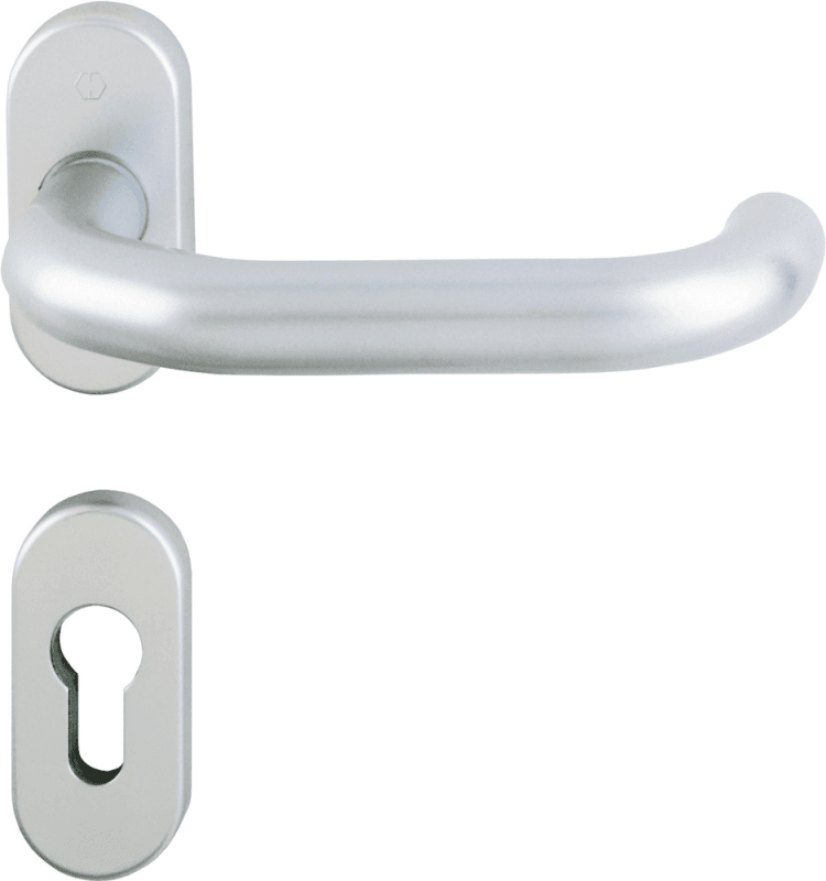 HOPPE Halbgarnitur Paris 138GF/55, ohne Schlüsselrosette, oval, Vierkant 8mm, DIN Links-Rechts, ohne Stütznocken, natur matt eloxiert festdrehbar