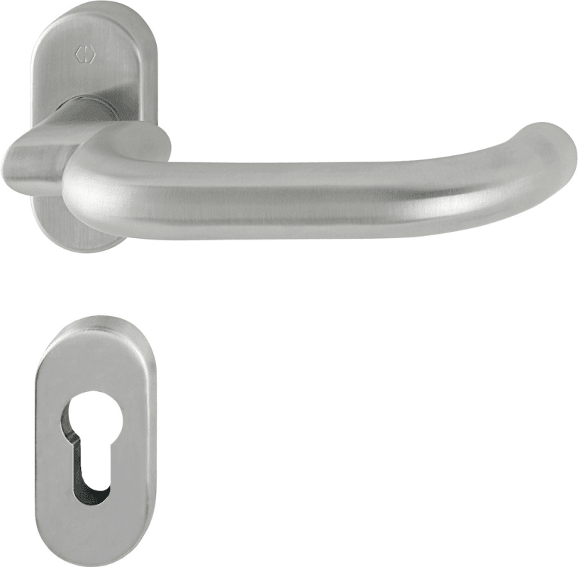 HOPPE Halbgarnitur Paris E138GF2/55, ohne Schlüsselrosette, oval, Vierkant 8mm, DIN Links-Rechts, ohne Stütznocken, edelstahl matt festdrehbar