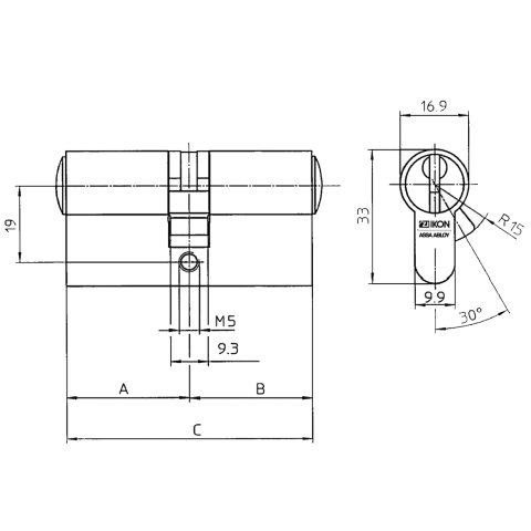 Profil Doppelzylinder Z 531, 148 NP, mit Schlüssel, Sperrnocke und Sicherungskarte, beidseitige Not- und Gefahrenfunktion