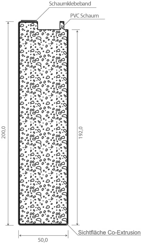 Profine-Bodeneinstand 200 mm SK Lg. 6,50 m Weiß, 200x50 mm PVC Schaum für 76er & 88er Nutzhöhe: ca. 192 mm