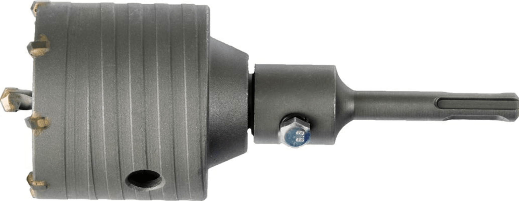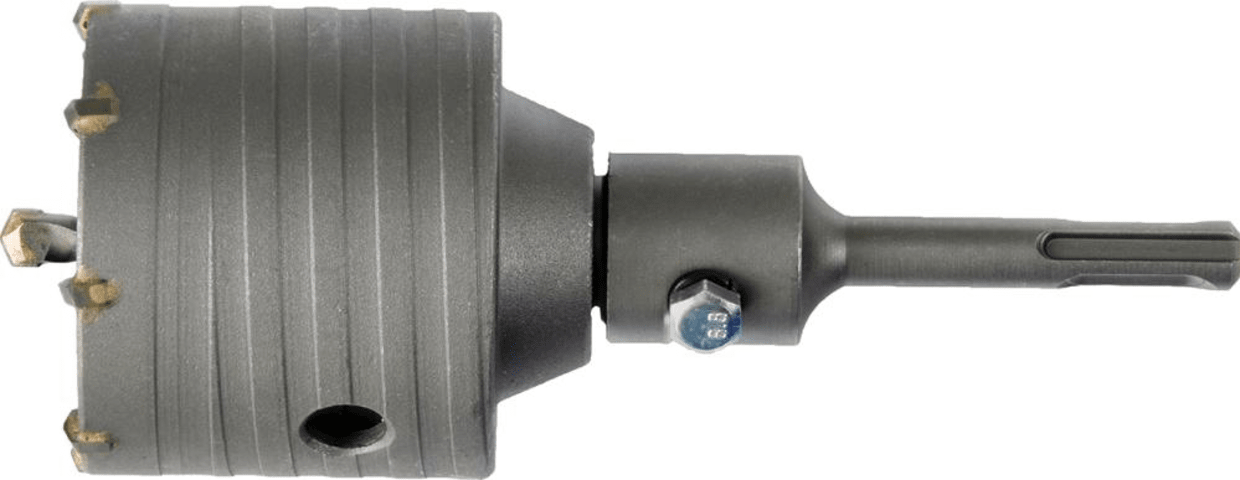 Lieferung: Schlagbohrkrone mit SDS-plus-Aufnahmeschaft und Zentrierbohrer.