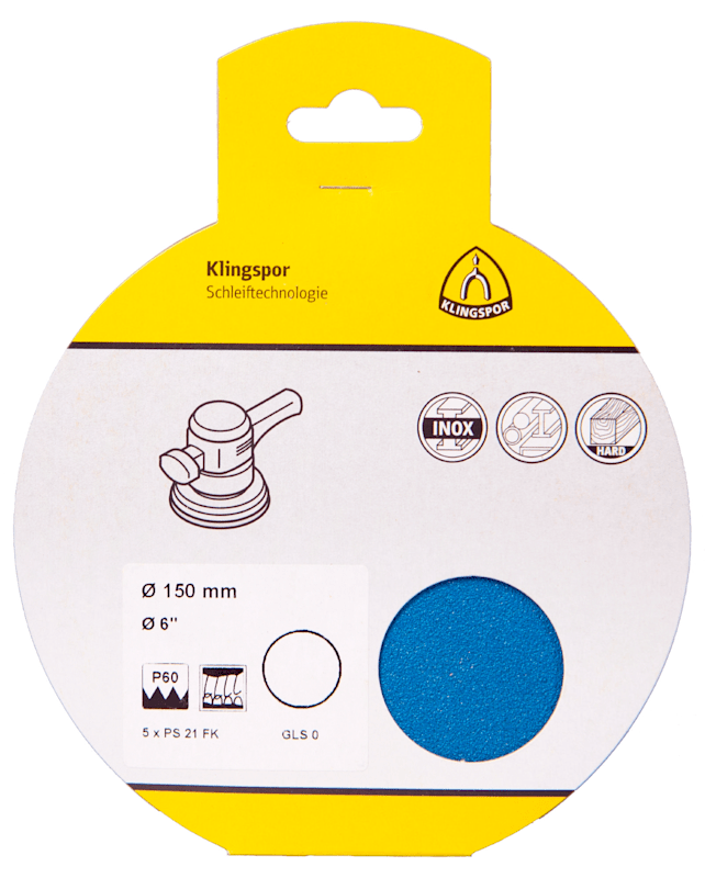 Klingspor PS 21 FK Scheiben kletthaftend, 150 mm Korn 40 ohne Loch, SB-verpackt im Reiter