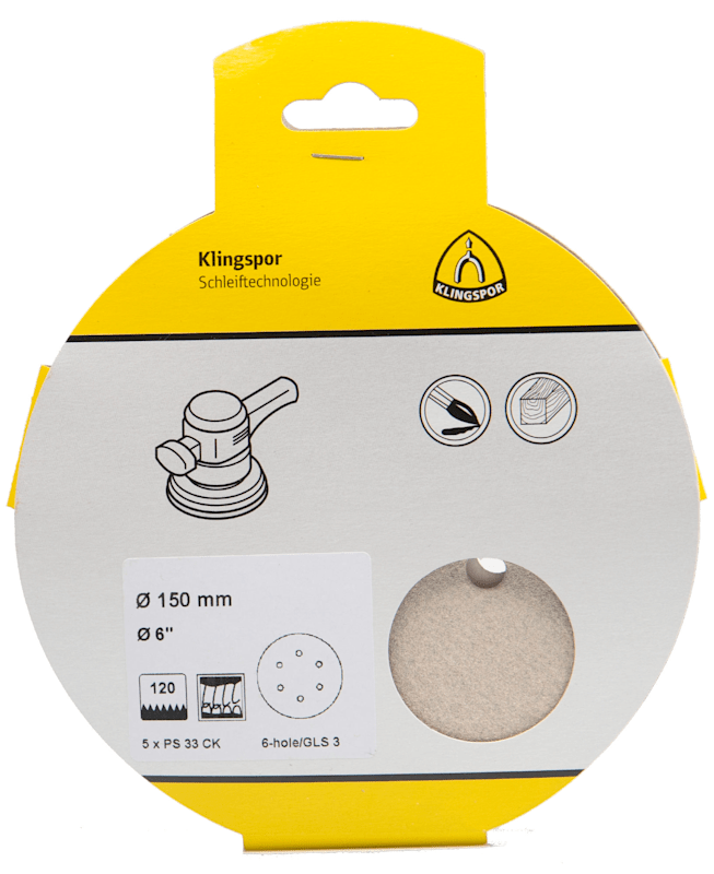 Klingspor PS 33 CK Scheiben kletthaftend, 150 mm Korn 120 Lochform GLS3, SB-verpackt im Reiter