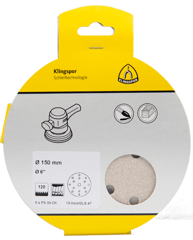 Klingspor PS 33 CK Scheiben kletthaftend, 150 mm Korn 120 Lochform GLS47, SB-verpackt im Reiter