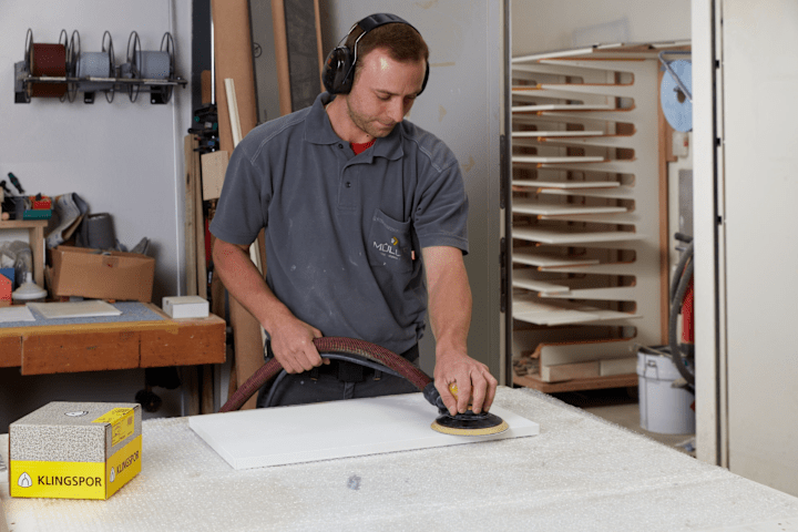 Hochwertiges Klettprodukt, insbesondere zur Bearbeitung von Farbe, Lack und Spachtel.