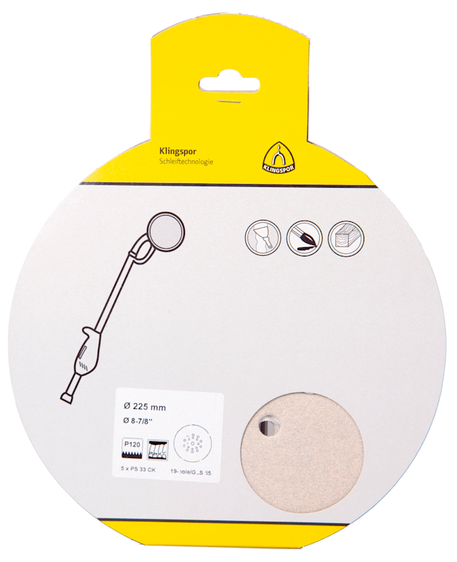 Klingspor PS 33 CK Scheiben kletthaftend, 225 mm Korn 120 Lochform GLS55, SB-verpackt im Reiter