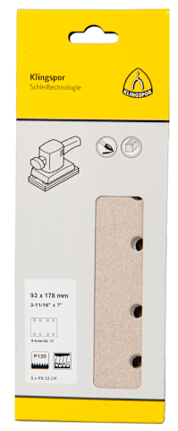 Klingspor PS 33 CK Streifen kletthaftend, 93 x 178 mm Korn 120 Lochform GL17, SB-verpackt im Reiter