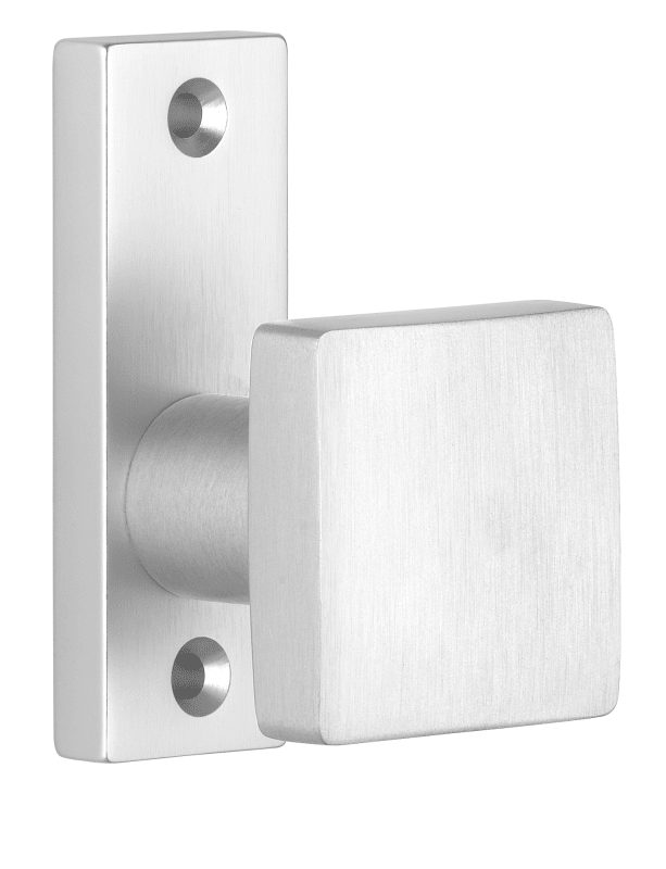 EDI, Profiltür-Knopf, Abdeckung: auf kantige Rosette, DIN-Richtung: DIN Links-Rechts, Modell: Dione, Modellnummer: 1399, Material: Aluminium, Farbton: naturfarbig, Oberfläche: eloxiert, Befestigungsart: sichtbar verschraubt, Befestigungstechnik: ohne Stütznocken, Material Unterkonstruktion: Stahl, Stärke Abdeckung: 10 mm, Befestigungssystem: Stiftbefestigung, Lagerung: fest, Türart: Rahmentüren, Türwerkstoff: Aluminium, Kunststoff, Länge: 86 mm, Breite: 30 mm, Knopfform: eckig, Knopflänge: 50 mm, Knopfbreite: 50 mm, Knopfhöhe: 60 mm, Montageart: einseitige Montage, Ausführung: mit Knopf K15, Rollengewinde: M12, Knopfbefestigung: Wechselstift mit Rolle