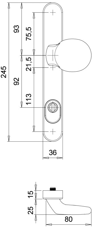 EDI, Profiltür-Knopf, Abdeckung: auf Schutz-Langschild, Lochung: Profilzylinder gelocht, Entfernung: 92 mm, Vierkant: 8 mm, Modell: Kronos, Modellnummer: 7145, Material: Aluminium, Farbe: braun, Farbton: dunkelbraun, Oberfläche: lackiert, Befestigungsart: verdeckt verschraubt, Befestigungstechnik: mit Stütznocken, Schildstärke: 15 mm, Form: oval, Ausführung: mit Zylinderabdeckung, Lagerung: fest, Türart: Rahmentüren,Türwerkstoff : Aluminium, Kunststoff, Eigenschaft: Knopf fest auf Schild,Knopfform : gekröpft, oval, Knopfhöhe: 35 mm, Knopfbreite: 70 mm, Befestigungssystem: Stiftverbindung, Drückerbefestigung: Vollstift, DIN-Richtung: DIN Links-Rechts, Länge: 245 mm, Breite: 36 mm