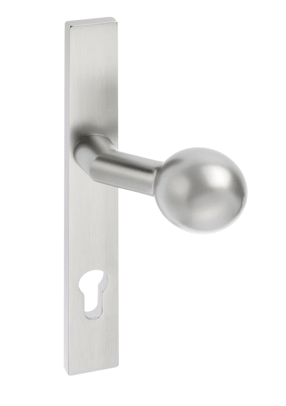EDI, Profiltür-Wechselgarnitur, Abdeckung: Langschild, Modell: PAN, Modellnummer: 2312/4020, Lochung: Profilzylinder gelocht, Entfernung: 92mm, Vierkant: 8mm, Material: Aluminium, Farbe: weiß, Farbton: verkehrsweiß, Oberfläche: lackiert, DIN-Richtung: DIN Links-Rechts, Lagerung: festdrehbar, Befestigungsart: verdeckt verschraubt, Befestigungstechnik: ohne Stütznocken, Befestigungssystem: Stiftverbindung,Drückerform : gekröpft, U-Form, Eigenschaft: Knopf fest auf Schild, Länge: 245mm, Breite: 30mm,Knopfform : Kugelform, Knopfdurchmesser: 55mm, Knopfhöhe: 99mm, Anschlagrichtung: Drücker rechts/links verwendbar, Drückerbefestigung: Vollstift, Form: eckig, Schildstärke außen: 10mm, Schildstärke innen: 10mm, Türstärke min.: 68mm, Türstärke max.: 75mm, Türart: Rahmentüren, Türwerkstoff: Aluminium, Kunststoff