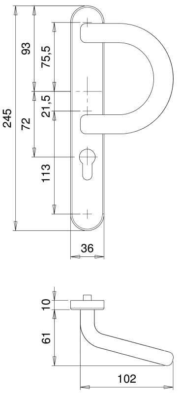 EDI, Profiltür-Wechselgarnitur, Abdeckung: Langschild, Modell: Kronos, Modellnummer: 1300/1635, Lochung: Profilzylinder gelocht, Entfernung: 72mm, Vierkant: 8mm, Material: Edelstahl, Farbton: edelstah