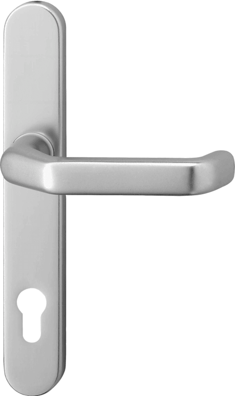 EDI, Profiltür-Wechselgarnitur, Abdeckung: Langschild, Modell: Kronos, Modellnummer: 1201/2535, Lochung: Profilzylinder gelocht, Entfernung: 92mm, Vierkant: 8mm, Material: Aluminium, Farbe: weiß, Farb