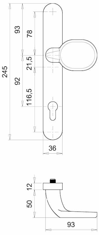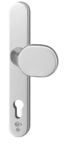Wechselgarnitur Kronos 1207/2535, Langschild oval, Profilzylinder gelocht, Entfernung 92mm, Vierkant 8, DIN Links-Rechts, mit Stütznocken, naturfarben eloxiert, festdrehbar
