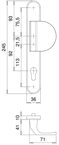 EDI, Profiltür-Wechselgarnitur, Abdeckung: Langschild, Modell: Kronos, Modellnummer: 1300/3035, Lochung: Profilzylinder gelocht, Entfernung: 92mm, Vierkant: 8mm, Material: Aluminium, Farbe: weiß, Farb