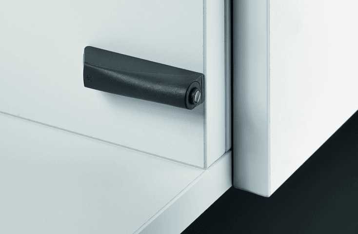 Öffnungssystem Push to open Lock zum Anschrauben, optionale magnetische Zuhaltung ohne Push Funktion, für den Einsatz in Kombination mit z.B. besonders hohen und/oder schweren Türen und Push to open Magnet