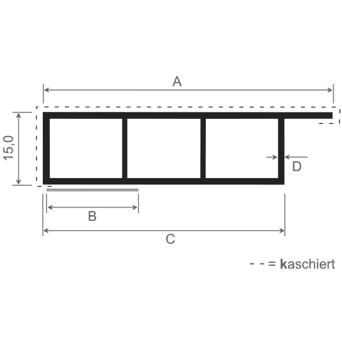 Kammerprofil 60x15 mm SK Lg. 6,00 m foliert, mit Nase 701505-083 SCHIEFERGRAU GLATT [53]