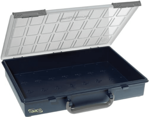 • Leerer Sortimentskasten, kann durch Einsätze (A 6-1, A 7-1, A 7-2, A 8-1, A 9-1 u. a.) und Einsatz-Sets unterteilt werden