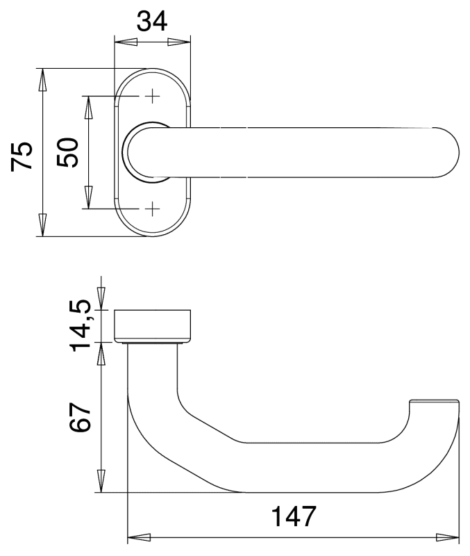 Rahmen-Rosettendrücker aus Aluminium oder Edelstahl.